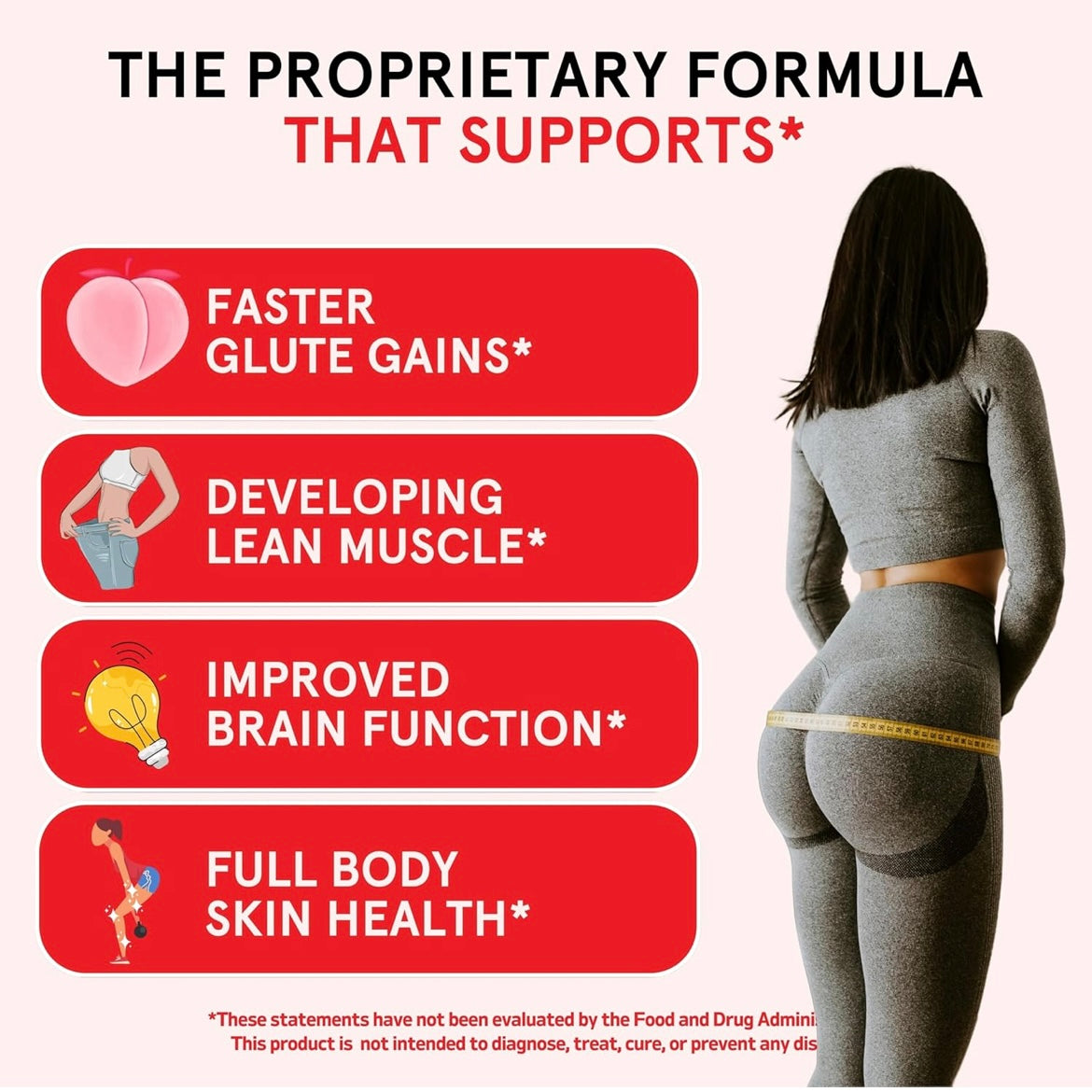 Premium creatine. Targets faster muscle and booty gain. Contains collagen and amino acids.